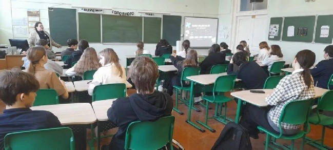 Ребятам рассказали об особенностях поступления в разные учебные заведения, в завершении урока 8 классники прошли профориентационный тест и получили приглашение на новую встречу в молодёжном пространстве.